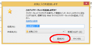 このようなウィンドウが表示されるので「追加」をクリック。これでお気に入りに「えあ草紙リーダー」というブックマークレットが追加されるはずです。